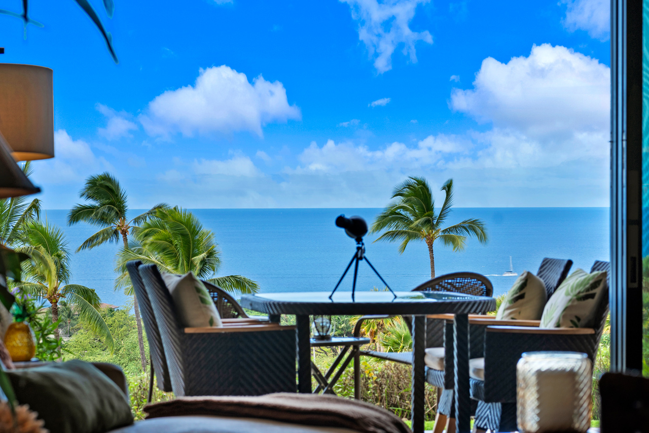 What if your home offered one of the most breathtaking ocean views in all of Wailea? This Keala O Wailea 59-103 delivers a front row seat to Maui’s most iconic scenery. Experience elevated island living in this beautifully appointed 2 bedroom, 2 bathroom villa located within the highly sought after Keala O Wailea community. Built in 2018, this exclusive 70 residence enclave is perched along the Wailea hillside, offering commanding panoramic views of the deep blue Pacific Ocean, dramatic sunsets, and epic seasonal whale activity. This 1,248 square foot single level residence welcomes you with floor to ceiling retractable glass doors that frame endless ocean views and flood the interior with natural light. Contemporary finishes include Bosch stainless steel appliances, quasar countertops, quality tile and carpet throughout, and a refined open concept design. The living area, kitchen, and primary bedroom are all positioned to capture the sweeping ocean backdrop, creating a seamless connection between interior comfort and Maui’s natural beauty. Both bedrooms are generously sized and thoughtfully separated for privacy, with the primary suite featuring a walk-in closet and an en suite bathroom with dual vanities. The kitchen blends luxury and function with premium materials, a smart layout, and ample storage. Indoor living flows effortlessly to the covered outdoor lanai, an entertainer’s retreat, complete with a BBQ, spacious seating area, and unobstructed views ideal for sunset evenings and unforgettable whale watching. Building 4 offers a peaceful and private setting within the community, completing this exceptional Wailea lifestyle opportunity.